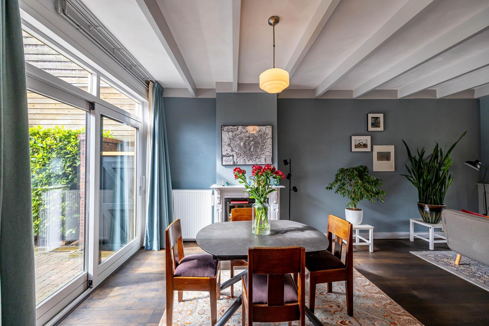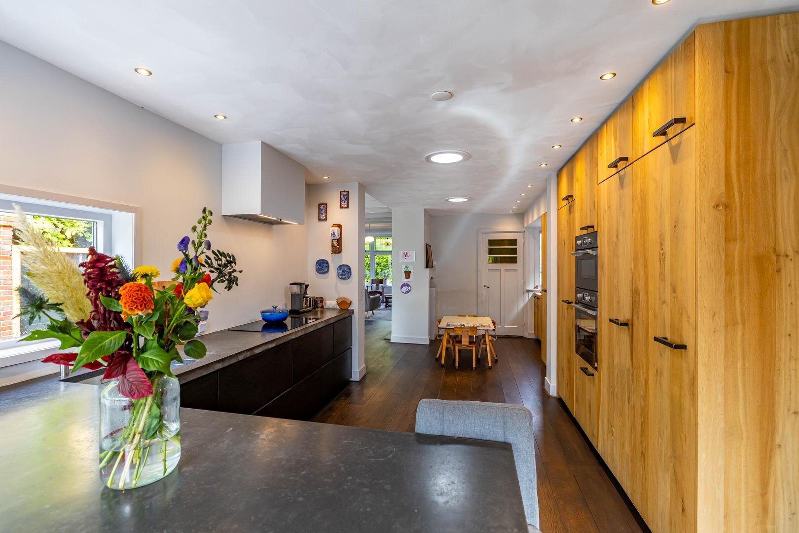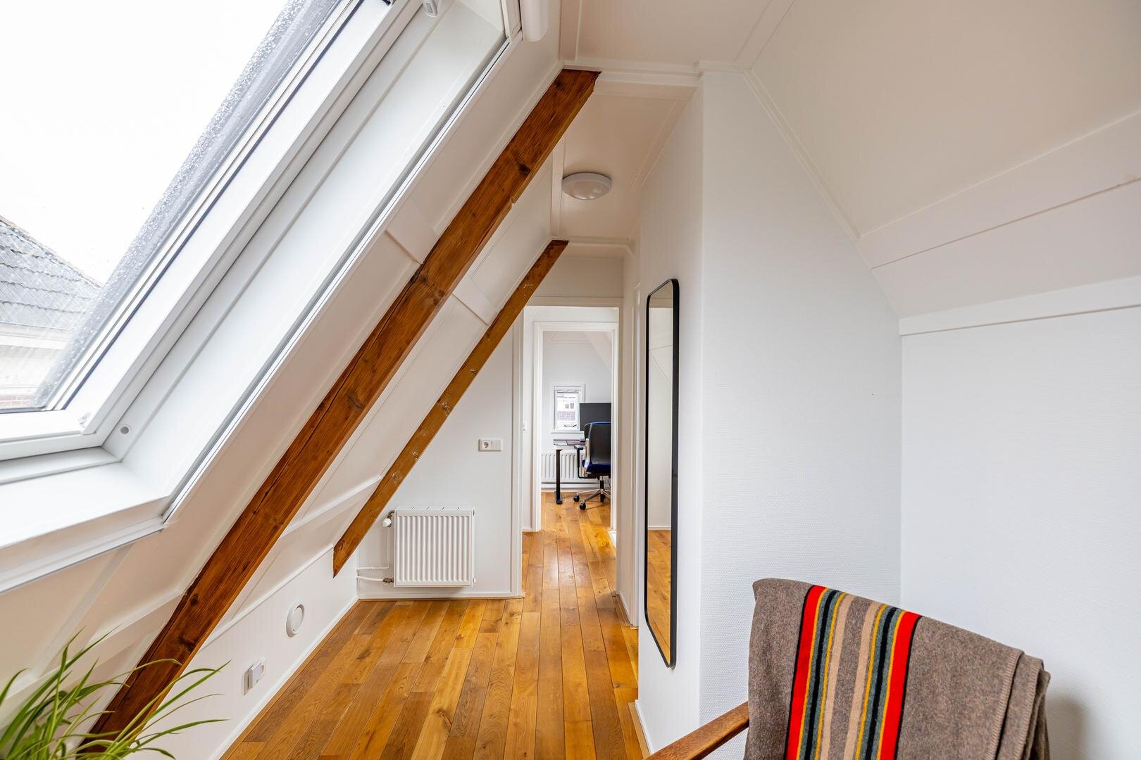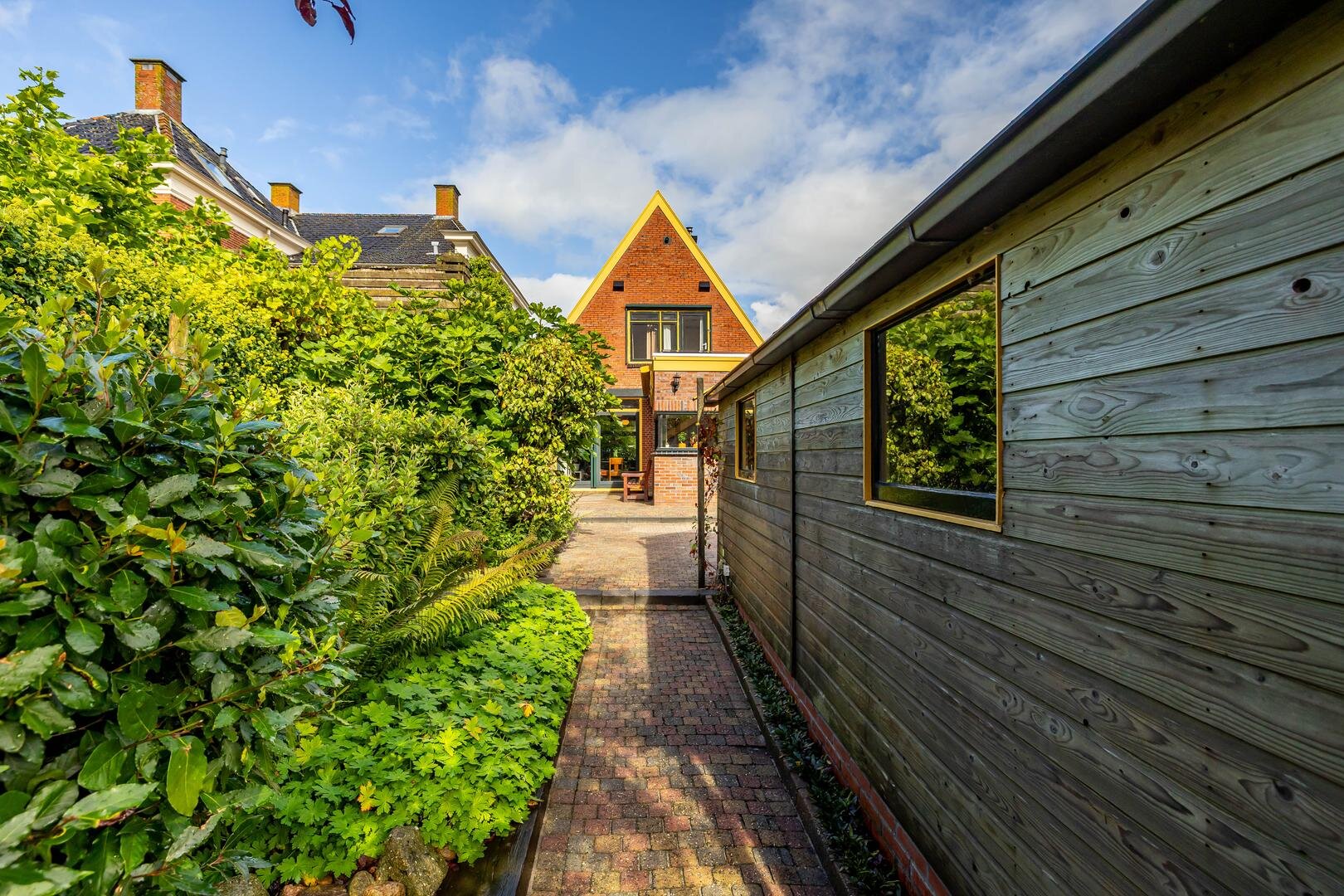 Aan het doorgaande vaarwater van het Damsterdiep ligt dit ruime, vrijstaande woonhuis uit 1928 met vrijstaande houten garage en tuin op het zuiden. Dit huis is wel heel bijzonder, met het karakter van eind jaren '20 en het hedendaagse comfort dankzij de verfijnde modernisering van de afgelopen jaren én de inzet van diverse duurzame maatregelen. Een fijn huis, een warm en liefdevol huis, dat zie je aan alles. Er is met smaak en gevoel voor stijl een nog betere versie gemaakt van het origineel. De authentieke elementen zijn daarbij bewaard gebleven, zoals glas-in-lood ramen, originele schouwen en de hoge balkenplafonds. Kom mee en laat u verrassen.De ligging is bovendien geweldig, aan een autoluw wijkje met zicht over het water en de voorzieningen van de stad Groningen binnen fietsbereik. Ook natuurgebied Kardinge en Noorddijk met haar prachtige molen liggen op loopafstand.Indeling: Entree/ruime hal met grindvloer, waar zich het toilet en de trapopgang naar boven bevinden. De woonkamer, die we vervolgens binnenstappen, brengt je met haar stijlvolle balken en houten vloer zo terug in de tijd – zeker wanneer je een blik werpt door de fraaie glas-in-loodramen van de erker. Tegelijkertijd voel je het comfort van de woning en zie je dat hier kosten noch moeite zijn gespaard om het geheel naar een hoger niveau te tillen. Dat gevoel wordt alleen maar sterker wanneer je richting de eethoek met grote schuifpui kijkt.Daar staat een fijne houtkachel, werkend op de cv, voor die gezellige koudere avonden – maar ook zeker om op energie te besparen, dankzij de koppeling met de verwarming. Vanuit de eethoek kun je naar de tuin, maar je komt hier ook bij de werkelijk prachtige open keuken (uit 2019), met een hoge houten kastenwand van licht eiken aan de ene zijde en een werk- en spoelwand in een donkere tint aan de andere zijde.Een echte eyecatcher van hoge kwaliteit, met een betonnen werkblad en voorzien van alle denkbare apparatuur: inductiekookplaat met afzuigkap, grote vriezer en koelkast, oven, combi-magnetron, Quooker (kokendwaterkraan) + Cube (gefilterd, gekoeld en bruisend water) en vaatwasser. Dankzij de vele raampartijen – ook in de hoek – is er volop lichtinval. Er is optimale bergruimte in de vele kasten en lades, maar ook in de provisiekelder die vanaf hier toegankelijk is. Aan het uiteinde van de keuken kun je plaatsnemen op een van de barkrukken, meekijken in de keuken of genieten van het zicht op de tuin.Eerste verdieping: Overloop, slaapkamer aan de voorzijde van ca. 14 m² met zicht op het water en een ruime kastenwand. De badkamer is ca. 5 m² – eenvoudig, maar functioneel – met een douchecabine, tweede toilet, vaste wastafel, designradiator en zelfs een ligbad. De twee andere slaapkamers zijn ca. 8 m² en 7 m² groot en liggen aan de achterzijde van de woning. De schuine kap geeft de kamers een knusse uitstraling, en de parketvloer op deze verdieping onderstreept dat.Tweede verdieping: Overloop met volop lichtinval dankzij de tripple glas dakramen. Op deze verdieping is nog een slaapkamer van ca. 7 m² bereikbaar, met een eigen douche, wastafel en toilet (sani-broyeur). Een efficiënte en lichtovergoten ruimte. Er ligt een mooie houten vloer, en het geheel is keurig afgewerkt. Aan de andere zijde is nog een fijne werkhoek bereikbaar, vanwaar je opnieuw een mooi uitzicht over het water hebt. Deze verdieping is in 2022 volledig vernieuwd en geïsoleerd. De ramen zijn voorzien van elektrisch bedienbare screens, net als de ramen aan de zuidzijde op de etages hier beneden.Achter het huis ligt een ruime, onderhoudsvriendelijke achtertuin van ca. 128 m², waar zon gegarandeerd is zodra hij schijnt – want de tuin ligt op het zuiden. Hier kun je dus echt genieten van het buitenleven, zonder al te veel te hoeven tuinieren. De houten garage is vrijstaand en bereikbaar via de mandelige weg.* met een heerlijk uitzicht over het water, zo richting het weiland met stadsmarkering.