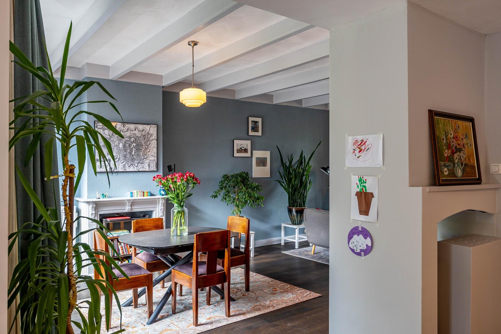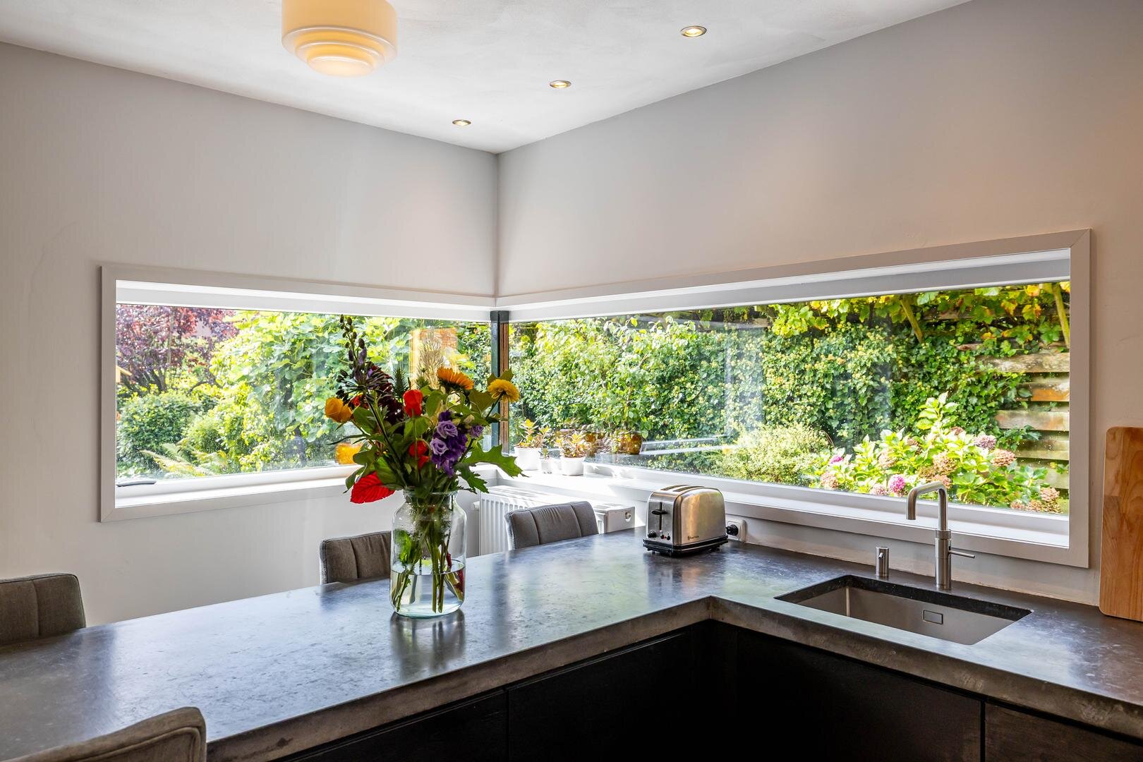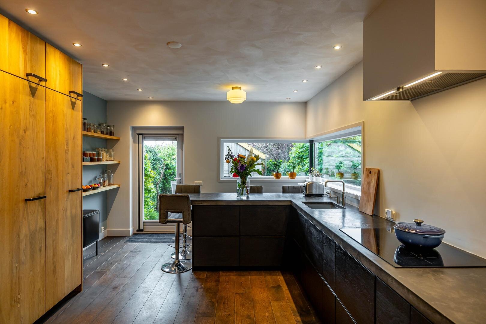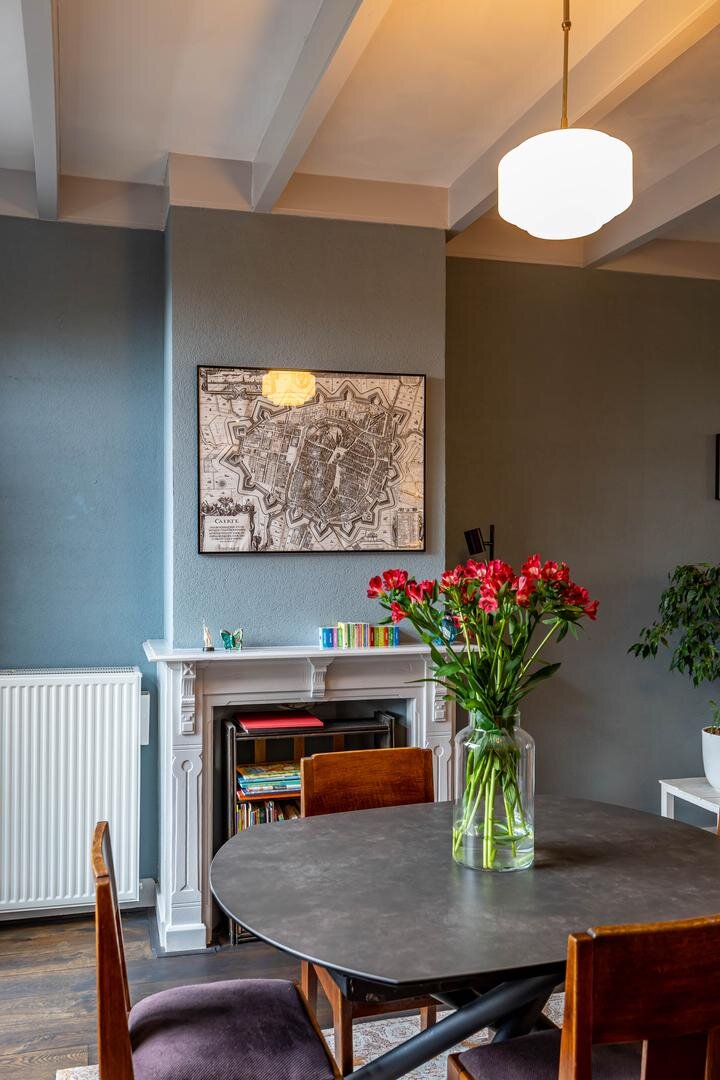 Aan het doorgaande vaarwater van het Damsterdiep ligt dit ruime, vrijstaande woonhuis uit 1928 met vrijstaande houten garage en tuin op het zuiden. Dit huis is wel heel bijzonder, met het karakter van eind jaren '20 en het hedendaagse comfort dankzij de verfijnde modernisering van de afgelopen jaren én de inzet van diverse duurzame maatregelen. Een fijn huis, een warm en liefdevol huis, dat zie je aan alles. Er is met smaak en gevoel voor stijl een nog betere versie gemaakt van het origineel. De authentieke elementen zijn daarbij bewaard gebleven, zoals glas-in-lood ramen, originele schouwen en de hoge balkenplafonds. Kom mee en laat u verrassen.De ligging is bovendien geweldig, aan een autoluw wijkje met zicht over het water en de voorzieningen van de stad Groningen binnen fietsbereik. Ook natuurgebied Kardinge en Noorddijk met haar prachtige molen liggen op loopafstand.Indeling: Entree/ruime hal met grindvloer, waar zich het toilet en de trapopgang naar boven bevinden. De woonkamer, die we vervolgens binnenstappen, brengt je met haar stijlvolle balken en houten vloer zo terug in de tijd – zeker wanneer je een blik werpt door de fraaie glas-in-loodramen van de erker. Tegelijkertijd voel je het comfort van de woning en zie je dat hier kosten noch moeite zijn gespaard om het geheel naar een hoger niveau te tillen. Dat gevoel wordt alleen maar sterker wanneer je richting de eethoek met grote schuifpui kijkt.Daar staat een fijne houtkachel, werkend op de cv, voor die gezellige koudere avonden – maar ook zeker om op energie te besparen, dankzij de koppeling met de verwarming. Vanuit de eethoek kun je naar de tuin, maar je komt hier ook bij de werkelijk prachtige open keuken (uit 2019), met een hoge houten kastenwand van licht eiken aan de ene zijde en een werk- en spoelwand in een donkere tint aan de andere zijde.Een echte eyecatcher van hoge kwaliteit, met een betonnen werkblad en voorzien van alle denkbare apparatuur: inductiekookplaat met afzuigkap, grote vriezer en koelkast, oven, combi-magnetron, Quooker (kokendwaterkraan) + Cube (gefilterd, gekoeld en bruisend water) en vaatwasser. Dankzij de vele raampartijen – ook in de hoek – is er volop lichtinval. Er is optimale bergruimte in de vele kasten en lades, maar ook in de provisiekelder die vanaf hier toegankelijk is. Aan het uiteinde van de keuken kun je plaatsnemen op een van de barkrukken, meekijken in de keuken of genieten van het zicht op de tuin.Eerste verdieping: Overloop, slaapkamer aan de voorzijde van ca. 14 m² met zicht op het water en een ruime kastenwand. De badkamer is ca. 5 m² – eenvoudig, maar functioneel – met een douchecabine, tweede toilet, vaste wastafel, designradiator en zelfs een ligbad. De twee andere slaapkamers zijn ca. 8 m² en 7 m² groot en liggen aan de achterzijde van de woning. De schuine kap geeft de kamers een knusse uitstraling, en de parketvloer op deze verdieping onderstreept dat.Tweede verdieping: Overloop met volop lichtinval dankzij de tripple glas dakramen. Op deze verdieping is nog een slaapkamer van ca. 7 m² bereikbaar, met een eigen douche, wastafel en toilet (sani-broyeur). Een efficiënte en lichtovergoten ruimte. Er ligt een mooie houten vloer, en het geheel is keurig afgewerkt. Aan de andere zijde is nog een fijne werkhoek bereikbaar, vanwaar je opnieuw een mooi uitzicht over het water hebt. Deze verdieping is in 2022 volledig vernieuwd en geïsoleerd. De ramen zijn voorzien van elektrisch bedienbare screens, net als de ramen aan de zuidzijde op de etages hier beneden.Achter het huis ligt een ruime, onderhoudsvriendelijke achtertuin van ca. 128 m², waar zon gegarandeerd is zodra hij schijnt – want de tuin ligt op het zuiden. Hier kun je dus echt genieten van het buitenleven, zonder al te veel te hoeven tuinieren. De houten garage is vrijstaand en bereikbaar via de mandelige weg.* met een heerlijk uitzicht over het water, zo richting het weiland met stadsmarkering.